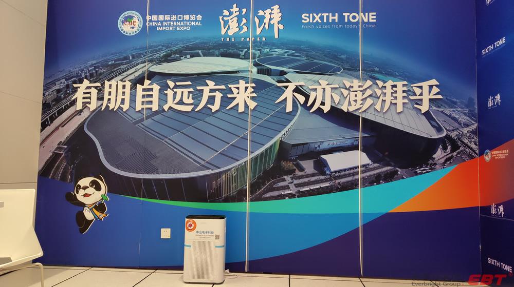 純物理方法殺滅新冠病毒的空氣凈化器在國家會展中心(上海)第三屆進博會10000平方新聞中心安裝完畢,以及新聞中心全體工作人員人手一份的殺滅新冠易呼吸口罩伴侶已送到指定地點,寧波中冶電子科技公司為進博會新聞中心安全防疫保駕護航!